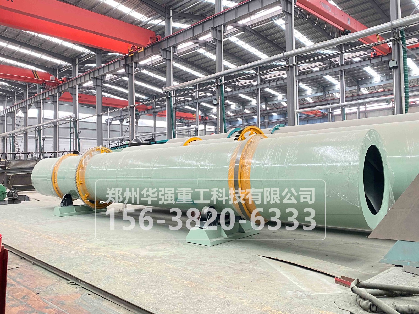 該系列轉(zhuǎn)筒冷卻機(jī)其工作原理是:由主電動(dòng)機(jī)驅(qū)動(dòng)皮帶和皮帶輪,通過(guò)減速機(jī)傳動(dòng)給主動(dòng)軸,通過(guò)安裝在主動(dòng)軸上的對(duì)開(kāi)式齒輪與固定在機(jī)體上的大齒圈相齒合,相向工作。物料從進(jìn)料端加入,經(jīng)筒體內(nèi)部。引風(fēng)機(jī)(與該機(jī)配套使用)的作用下使筒體內(nèi)部空氣流動(dòng)加快,通體內(nèi)壁上安裝的揚(yáng)料板不斷將物料翻起,從而達(dá)到冷卻均勻的目的。冷卻后的物料從出料口流出,隨著電動(dòng)機(jī)的不斷旋轉(zhuǎn),物料不斷進(jìn)入方能實(shí)現(xiàn)大批量生產(chǎn)。